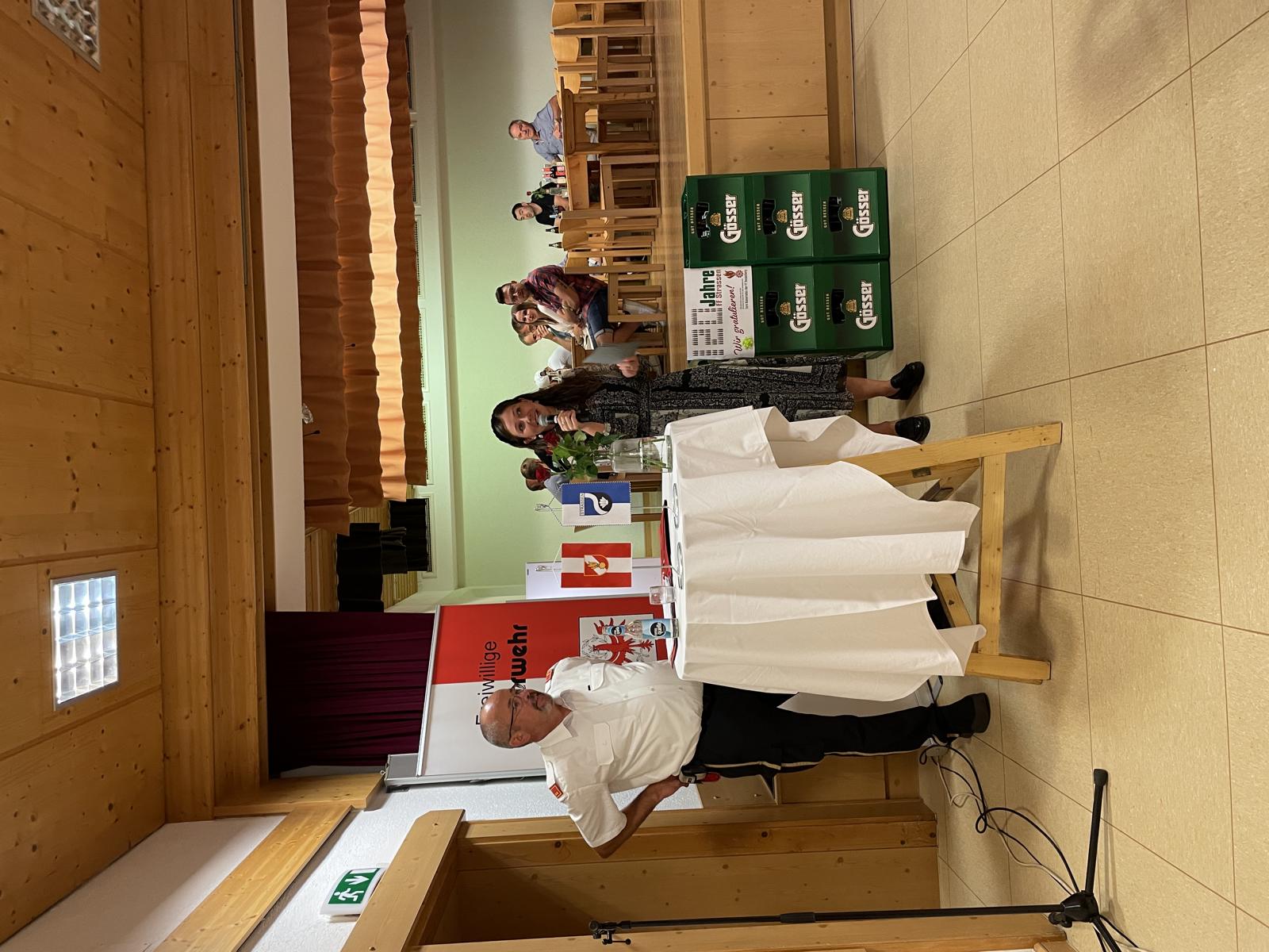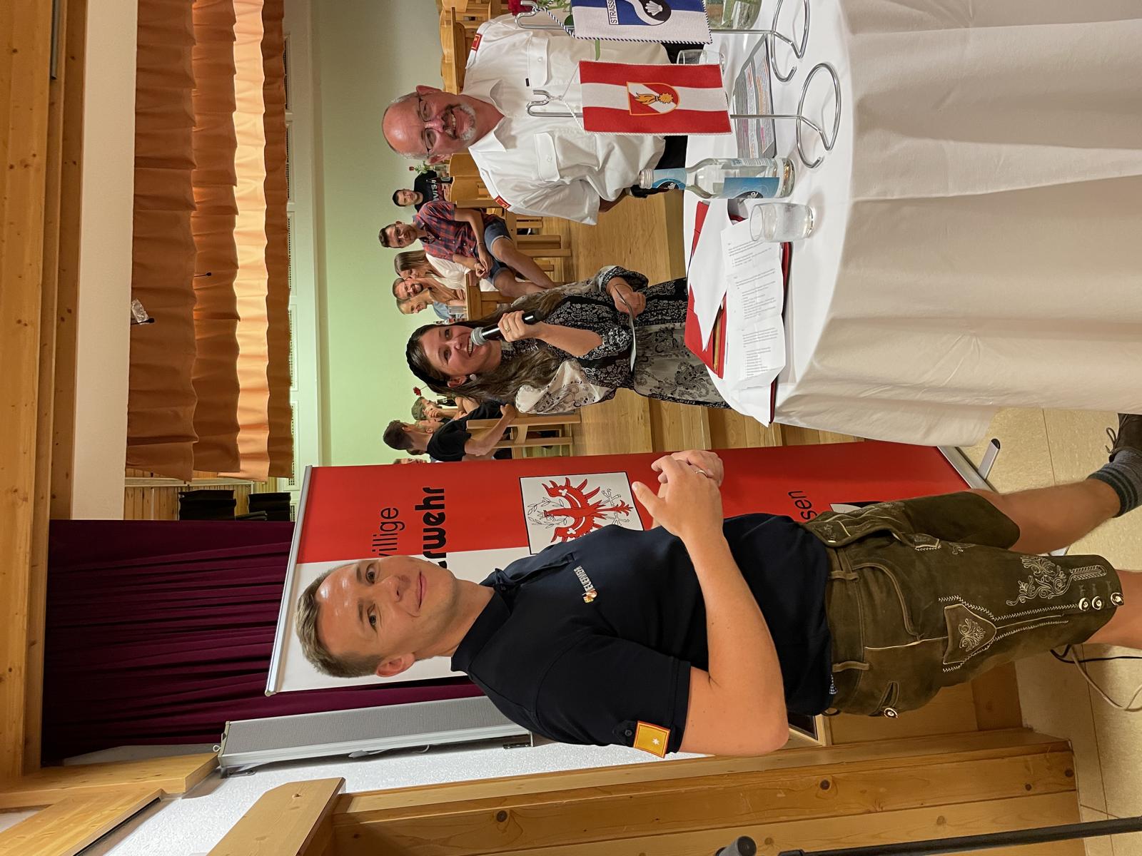 Nach einem kurzen, informativen Rückblick über die wichtigsten Geschehnisse der vergangenen 120 Jahre durch unseren Kommandanten OBI Gebhard Fuchs sowie Altkommandant und Ehrenmitglied Peter Weiler berichtete ABI Martin Pree als Kommandant der FF St. Florian unter anderem über das Zustandekommen der Partnerschaft unserer beider Wehren.