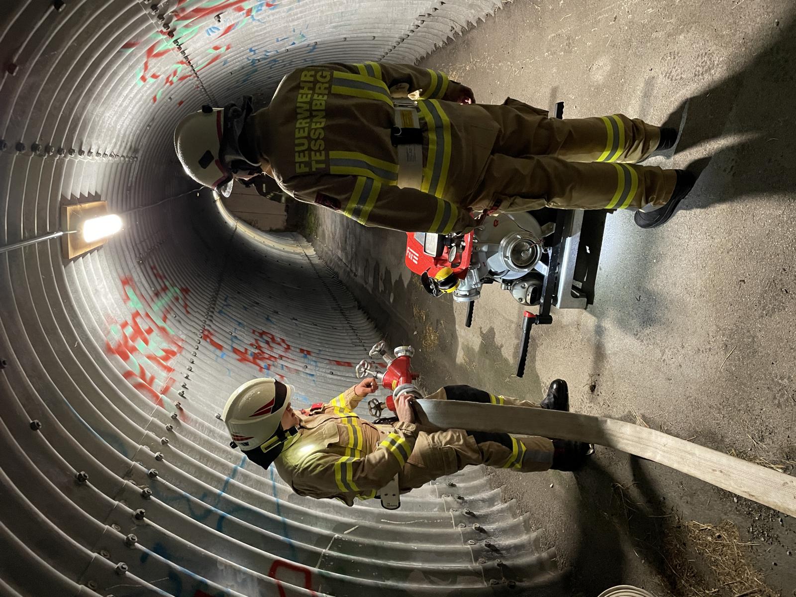 Zur Sicherstellung der Löschwasserversorgung des TLFA wurde von den Gruppen LFB und KLF sowie der mitalarmierten Gruppe aus Tessenberg eine Relaisleitung mit 3 zwischengeschalteten Pumpen aufgebaut. Als Wasserentnahmestelle diente die Drau.