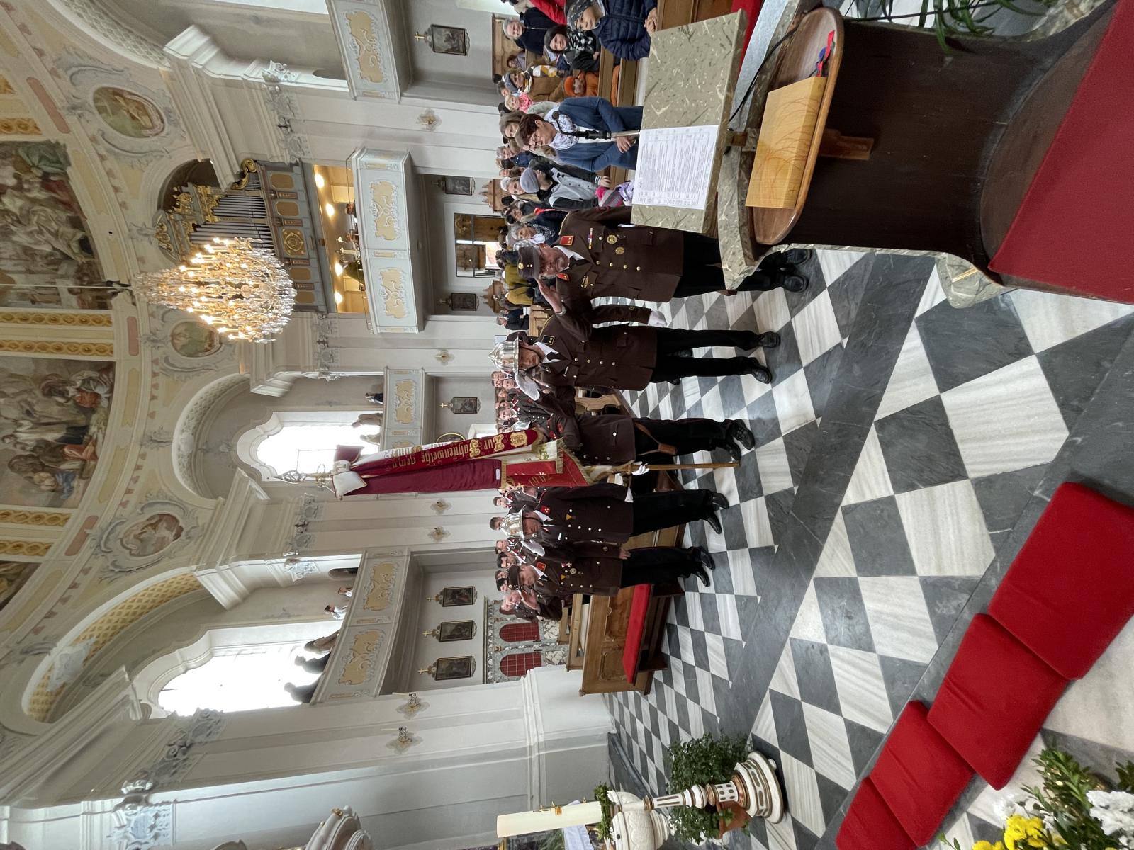 Unter Begleitung der Bundesmusikkapelle Strassen erfolgte der feierliche Einzug in die Dreifaltigkeitskirche, wo Pfarrer MMag. Hansjörig Sailer den Festgottesdienst zelebrierte. Die musikalische Gestaltung durch den Männerchor verlieh der Messfeier einen sehr würdigen und festlichen Rahmen.