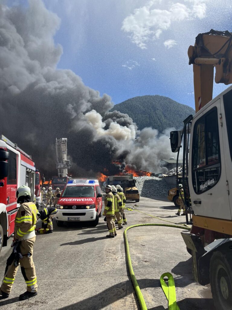Am Samstag, dem 28. Juni 2025, wurde die Freiwillige Feuerwehr Strassen um 15:23 Uhr per Pager zu einem Brandeinsatz auf dem Gelände der Entsorgungsfirma Rossbacher in Nußdorf-Debant alarmiert. Binnen kürzester Zeit rückten wir mit TLF, KDOF und insgesamt 16 Mann zum Einsatzort aus.