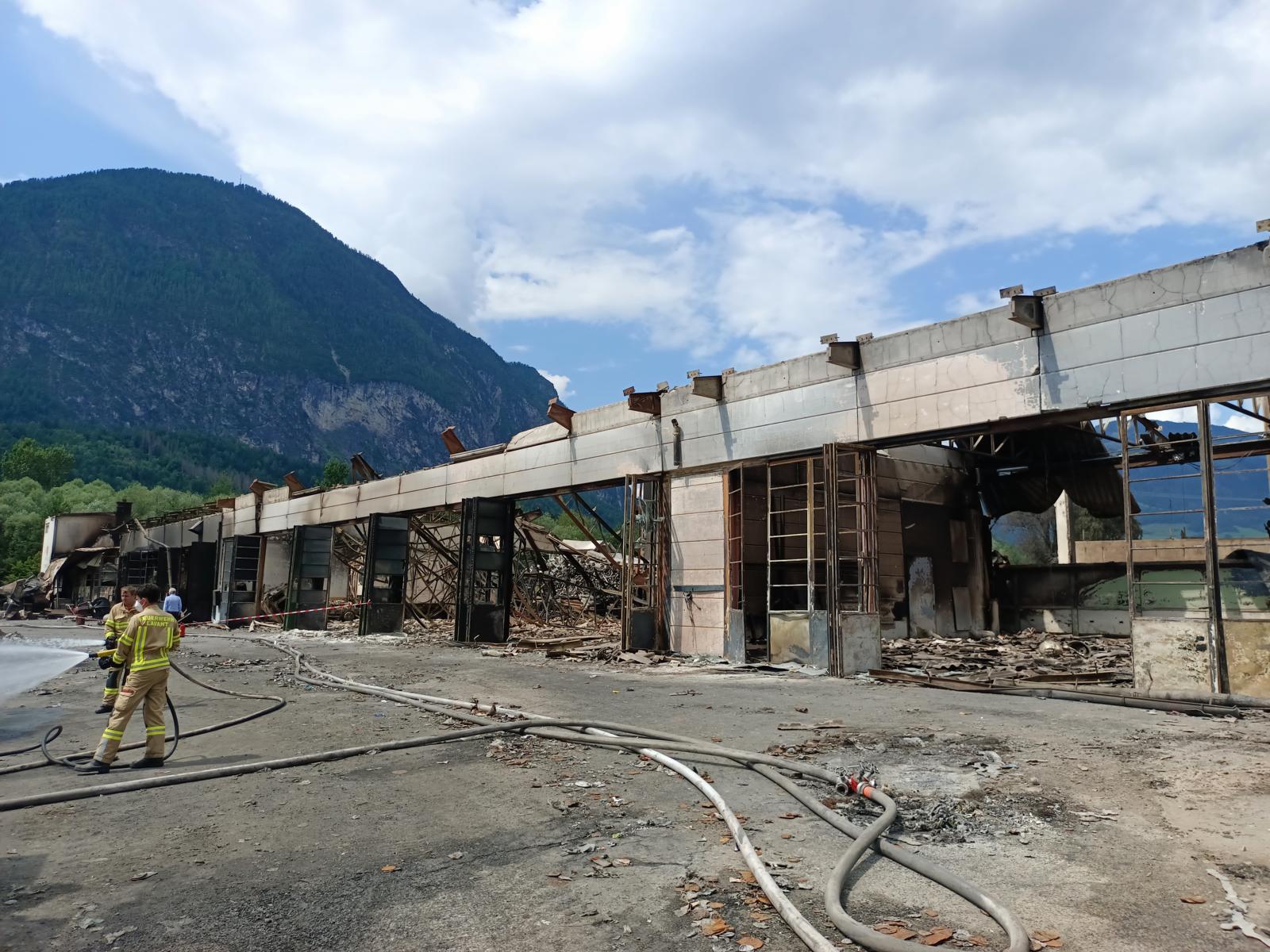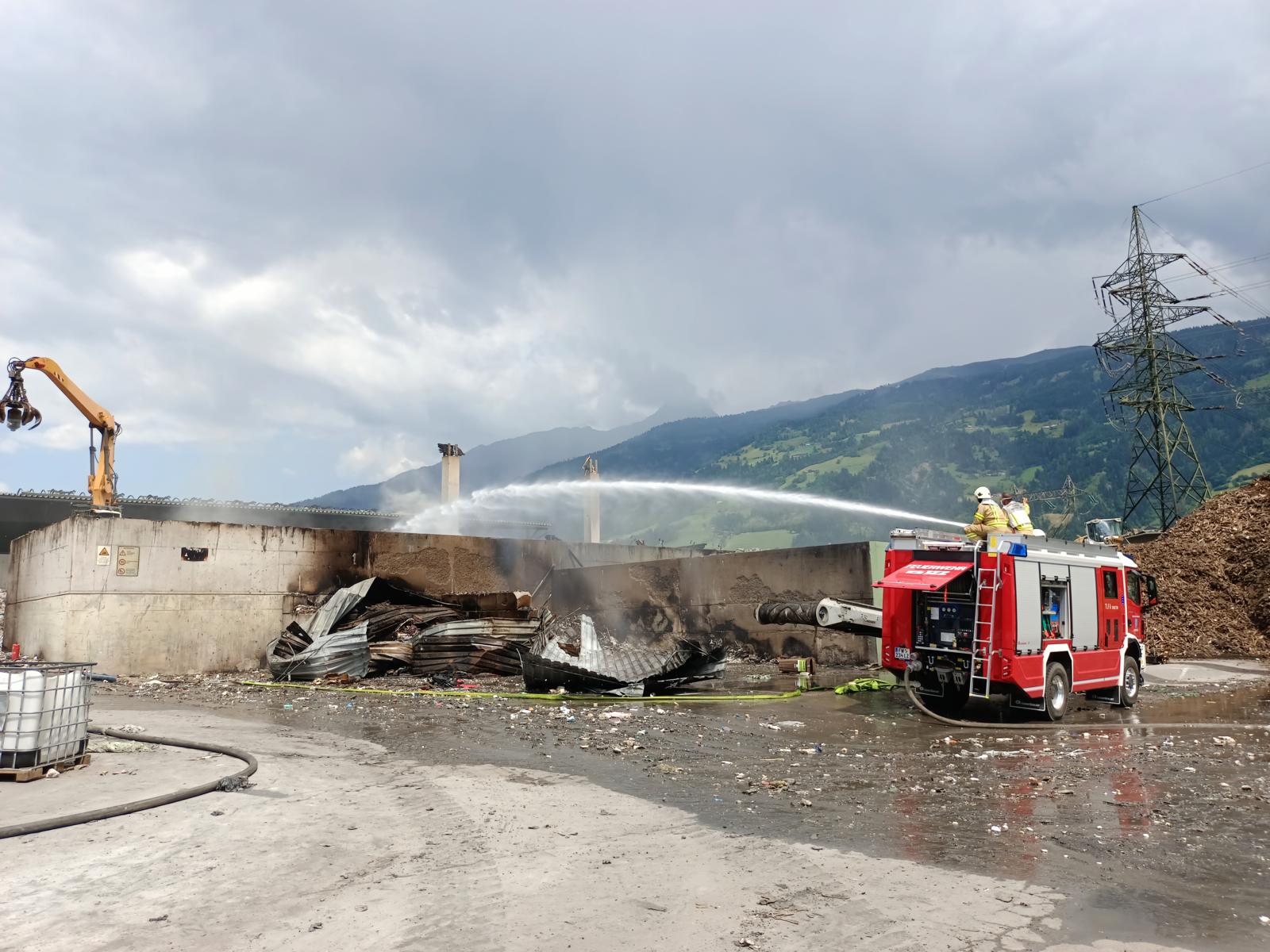Wegen des immensen Ausmaßes des Feuers und der damit verbundenen Gefahrenlage wurde der vollständige Rückzug aller Einsatzkräfte aus dem Gelände angeordnet. Nach einer erneuten Lagebeurteilung lag der Fokus nun auf dem Schutz angrenzender Infrastruktur – insbesondere des benachbarten Umspannwerks. Nach dem Eintreffen weiterer Spezialkräfte, darunter auch die Berufsfeuerwehr Innsbruck, konnte in der Nacht ein erneuter Löschangriff auf das Firmengelände gestartet werden.
