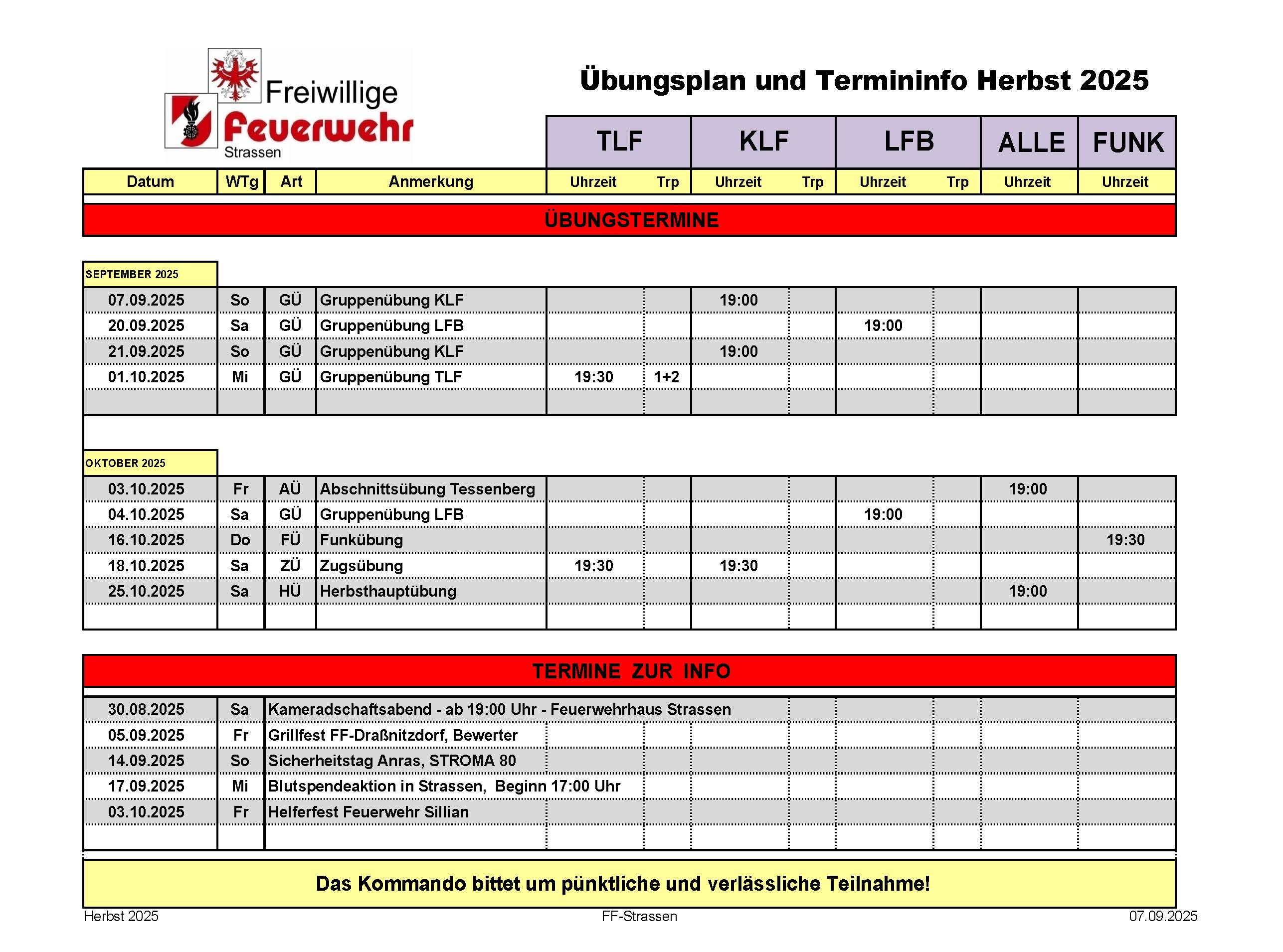 Die Übungstermine für den Herbst 2025 wurden fixiert!
