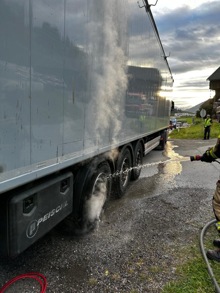 Beim Eintreffen stellte sich heraus, dass es bei einem LKW-Auflieger zu einer starken Rauchentwicklung im Bereich der hinteren rechten Bremse gekommen war. Der betroffene Bereich wurde sofort kontrolliert und mithilfe des Tanklöschfahrzeuges gezielt abgekühlt. Eine Wärmebildkamera kam zusätzlich zum Einsatz, um eine mögliche Ausbreitung des Brandes auszuschließen.